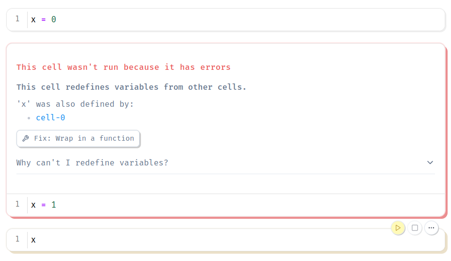 Why can't I redefine variables? marimo guarantees that the code on the page
